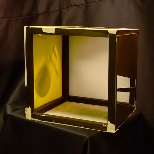 But yeah. Shadows are a big deal. So much, I thought I'd try and make some, because I too, want my work to look as awesome as Conrad Shawcross'. Here's a box I've panelled with my print template designs and some fabric: