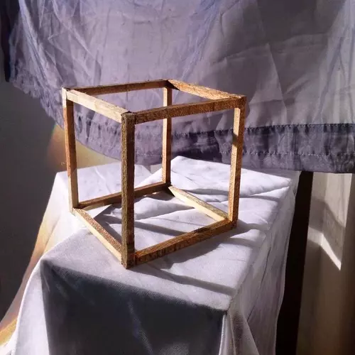 I created a small wooden cube and stuck some fabric to the sides using making tape. With one side left uncovered, it could sit on the projection screen and made some lovely patterns.